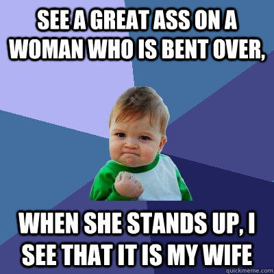 See a great ass on a woman who is bent over, when she stands up, i see that it is my wife