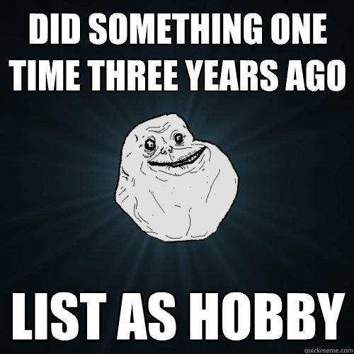 Did something one time three years ago List as hobby