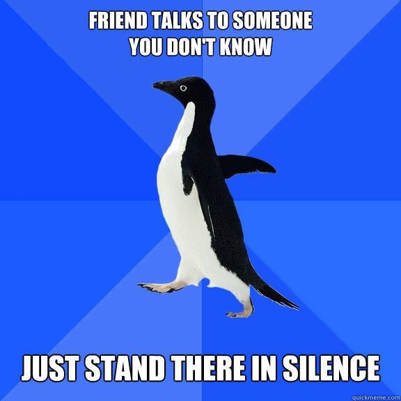 Friend talks to someone You don't know Just stand there in silence
