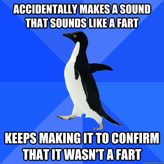 accidentally makes a sound that sounds like a fart keeps making it to confirm that it wasn't a fart