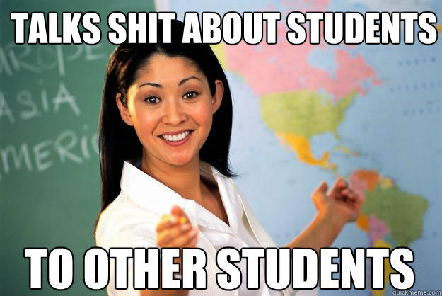 TALKS SHIT ABOUT STUDENTS TO OTHER STUDENTS