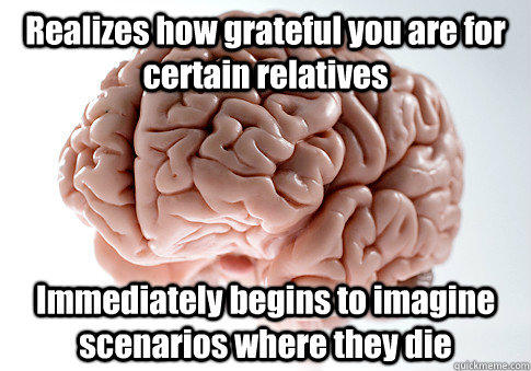 Realizes how grateful you are for certain relatives Immediately begins to imagine scenarios where they die