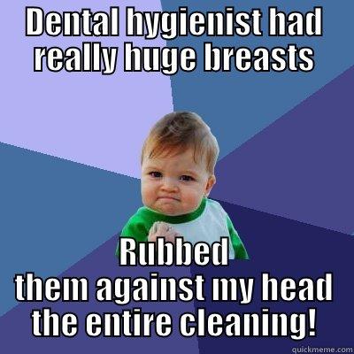 Dental hygiene breasts - DENTAL HYGIENIST HAD REALLY HUGE BREASTS RUBBED THEM AGAINST MY HEAD THE ENTIRE CLEANING! Success Kid