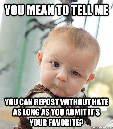you mean to tell me you can repost without hate as long as you admit it's your favorite?