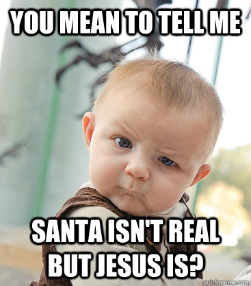 you mean to tell me Santa isn't real but jesus is?