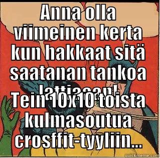 anna olla viimeinen kerta!Tein 10x10 toistoa mavea, kauhea kolina kun en saattanut tankoa kertaakaan, mut mitä välii...