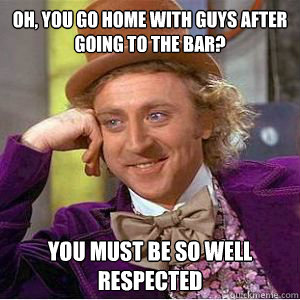 Oh, you go home with guys after going to the bar? You must be so well respected